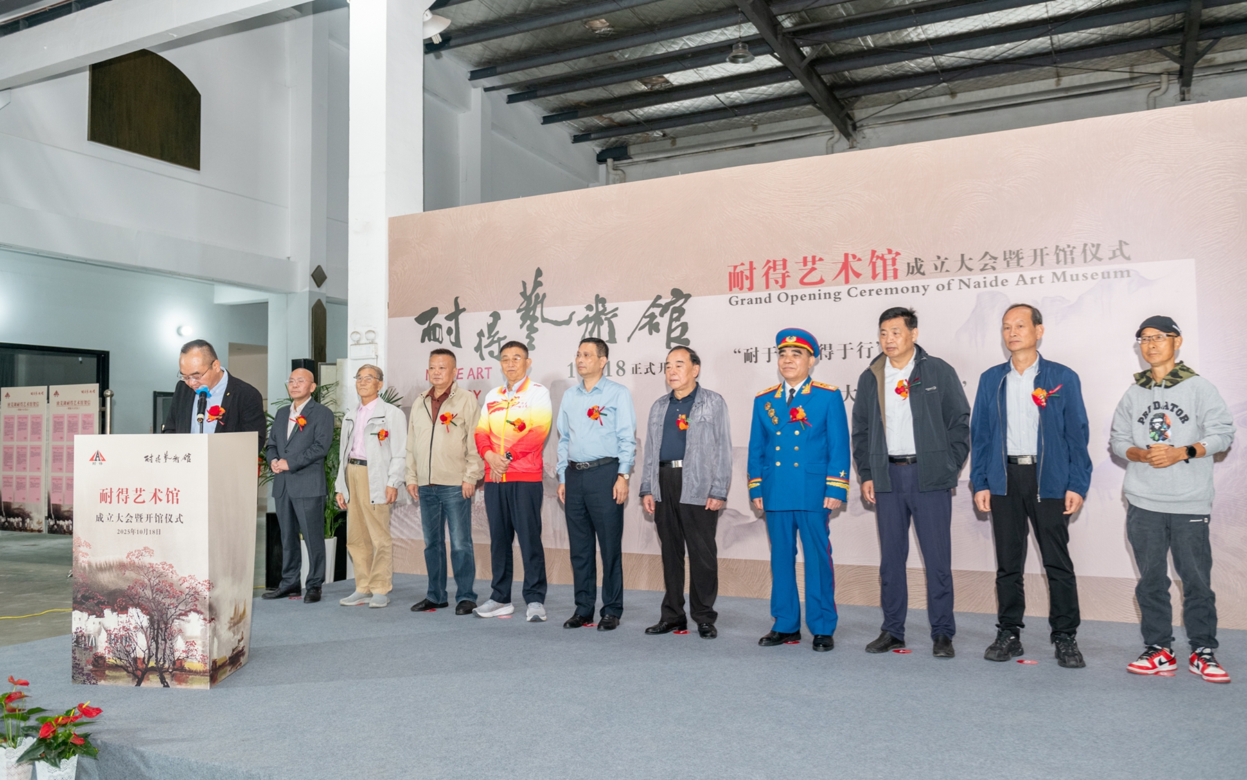 開(kāi)館儀式當(dāng)天,蕪湖市關(guān)工委主任魏道斌,國(guó)家一級(jí)演員、朱德特型演員、大校陶賢鋒,安徽省航運(yùn)協(xié)會(huì)會(huì)長(zhǎng)、灣沚商會(huì)會(huì)長(zhǎng)尹德榮,蕪湖市公安局原副局長(zhǎng)楊建偉,蕪湖市企業(yè)聯(lián)合會(huì)灣沚區(qū)工作站站長(zhǎng)、安徽華星集團(tuán)董事長(zhǎng)奚志華,蕪湖市企業(yè)聯(lián)合會(huì)灣沚區(qū)工作站專(zhuān)家咨詢(xún)委召集人陶顯松,國(guó)家一級(jí)美術(shù)師、中國(guó)美術(shù)家協(xié)會(huì)會(huì)員、安徽省水粉彩學(xué)會(huì)副主席、蕪湖市美術(shù)家協(xié)會(huì)第五屆主席團(tuán)主席、蕪湖書(shū)畫(huà)院專(zhuān)職畫(huà)家、王大仁美術(shù)館館長(zhǎng)王彪,蕪湖市灣沚區(qū)詩(shī)書(shū)畫(huà)學(xué)會(huì)會(huì)長(zhǎng)陳偉以及賀信單位負(fù)責(zé)人,灣沚區(qū)藝術(shù)家、企業(yè)家等160多人出席開(kāi)館儀式。